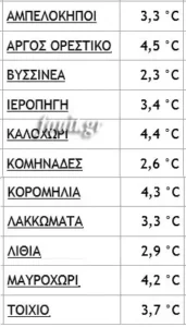 Στην πόλη της Καστοριάς η ελάχιστη ήταν 5,1 °C
